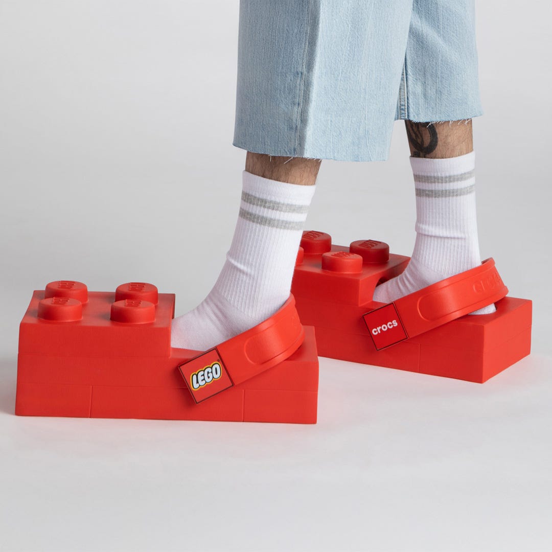 Another recent collaboration which scored more derision than admiration was the Lego Brick Clog, created by the eponymous toymaker and plastic footwear brand Crocs. Priced at £149.99, the outsized blocky clogs come with a useful warning that they are “not intended for all day wear”. Fashion design legend Karl Lagerfeld once quipped that sweatpants are for people who’ve given up. I would venture to say the same about Crocs, the wearing of which ought to be banned for anyone over 12. This limited edition design is more of a marketing stunt to herald the launch of a larger collection of Lego-themed footwear, which will no doubt cement Crocs’ position as the casual footwear of choice for plastic loving kids.