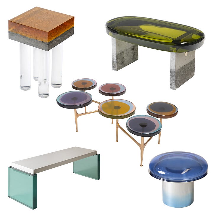 Other designers like Ian Alistair Cochran focus on colour, casting resin to create bulbous tables in playful shades.