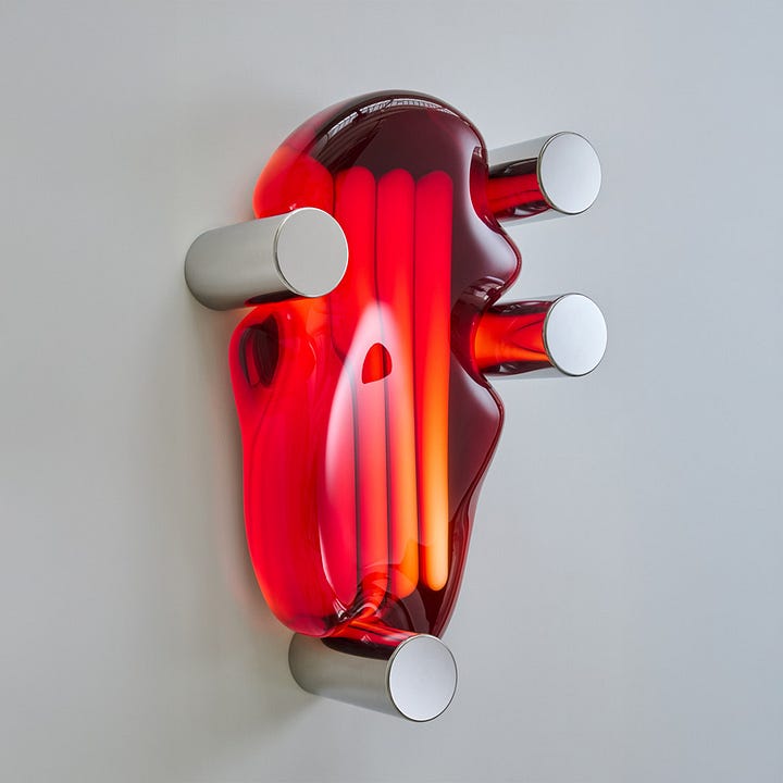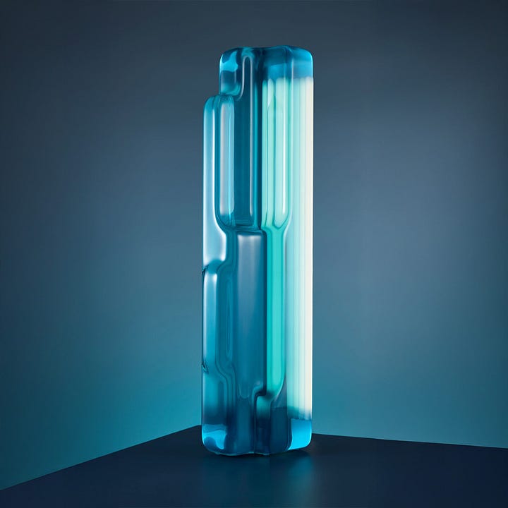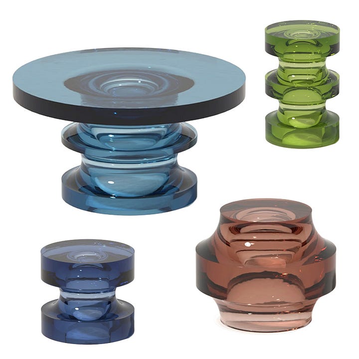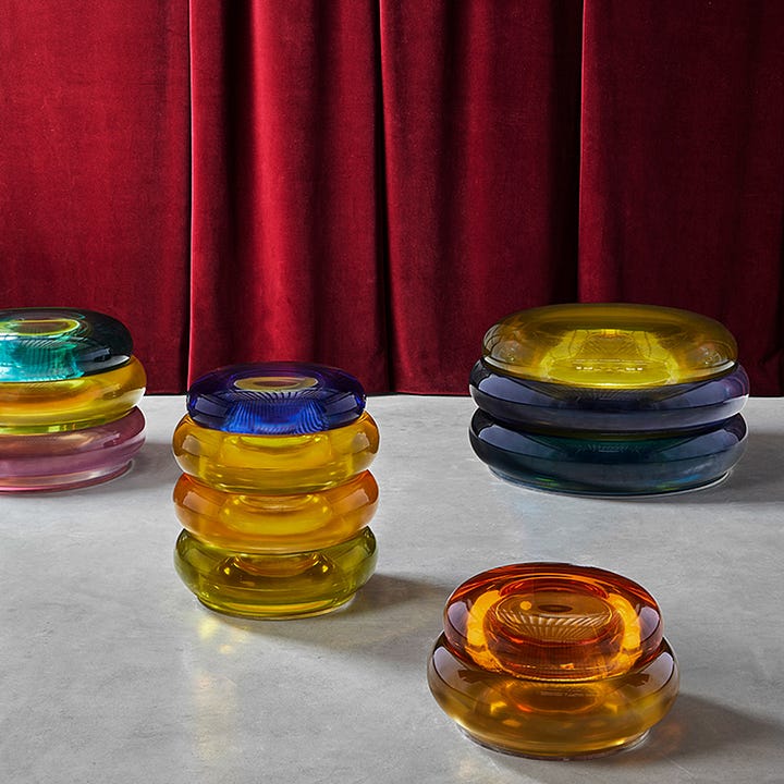 Multidisciplinary designers Draga Obradovic and Aurel K. Basedow, better known as Draga & Aurel, are fascinated by transparency in art and design. This led them to explore the creative potential of resin, attracted by its luminous quality and vibrant colours. Their Transparency Matters collection of tables and lights combine minimalist shapes, op-art inspired colours and a retro space age vibe to great effect. I especially like the jelly-shaped Bon Bon collection of coffee tables. Draga & Aurel have also experimented with combining resin with concrete, showcasing the rough texture of the latter through the colourful, transparent lens of the former.