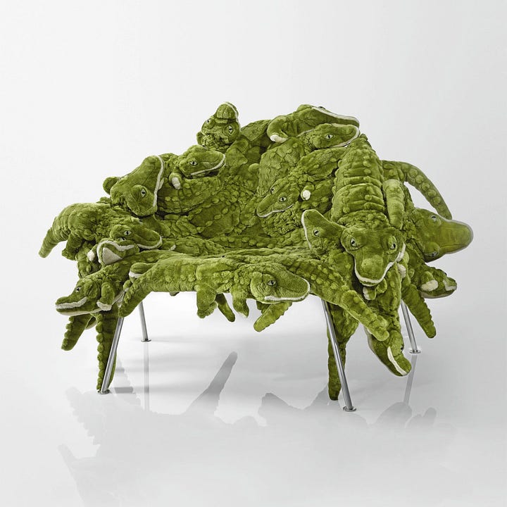 The Campana brothers were early adopters of this strategy, having pioneered the art of turning plush toys into armchairs. However, their works are now seriously collectible and can fetch tens of thousands of dollars at auction. AP Collection has taken this idea further and developed a whole collection of furniture using upcycled stuffed animals. Admittedly some of their designs look mildly disturbing and remind me of the fused mannequin artworks of Jake and Dinos Chapman.